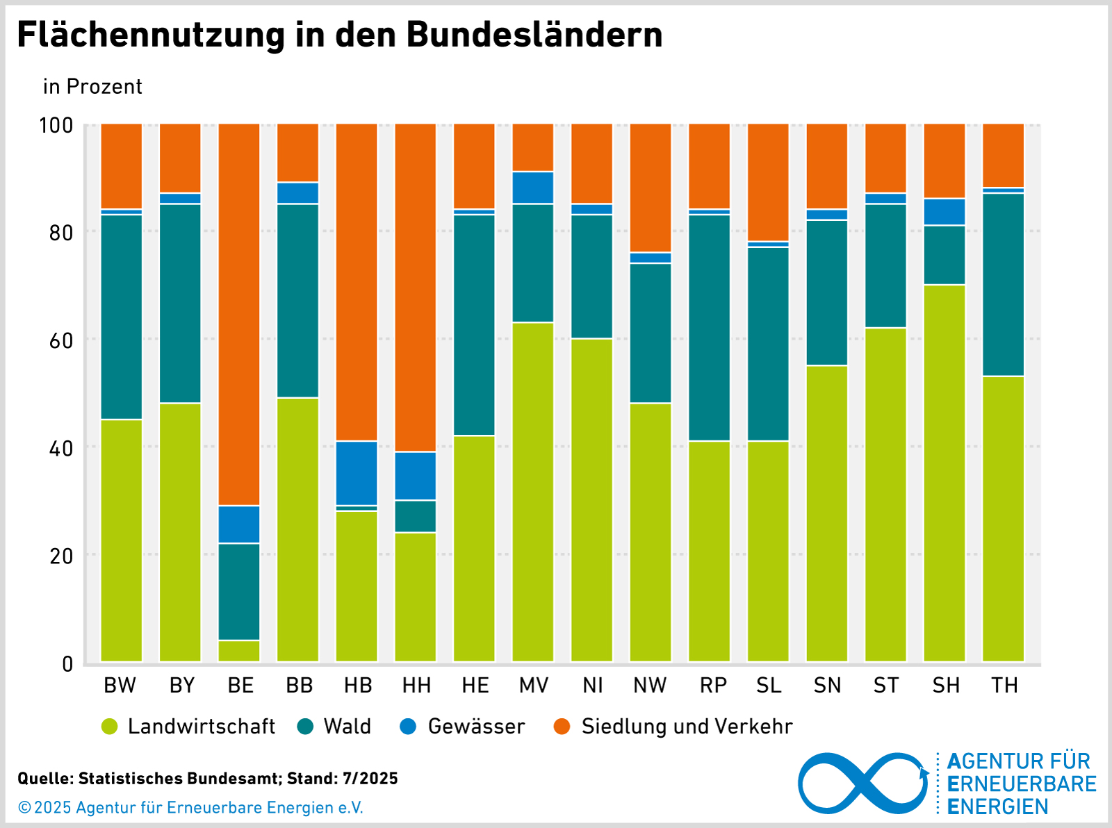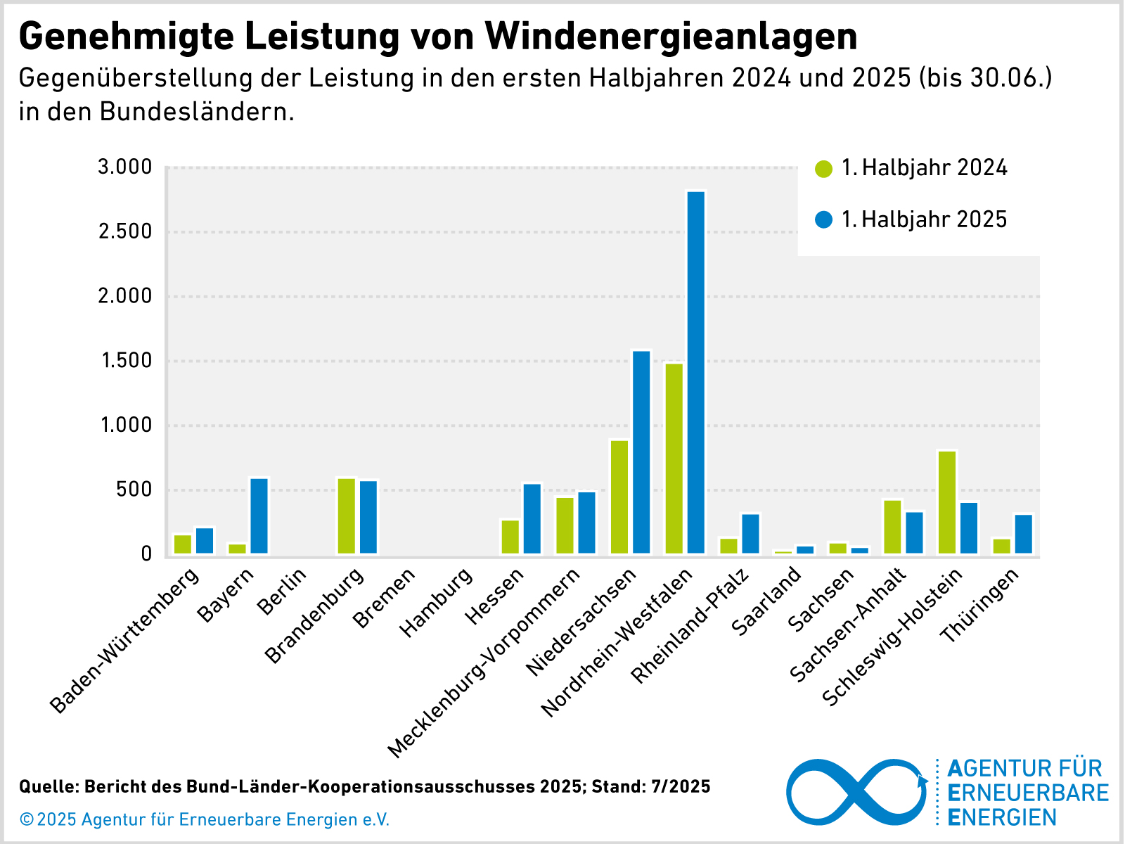 Für den Ausbau von Wind- und Solarenergie definiert das Erneuerbare-Energien-Gesetz verbindliche Ausbaupfade. Für die Windenergie an Land legt das Windenergieflächenbedarfsgesetz (WindBG) zusätzlich verpflichtende Flächenziele fest. Der Bund-Länder-Kooperationsausschuss bewertet jährlich, wie weit die Bundesländer bei der Ausweisung geeigneter Flächen sowie beim realen Ausbau vorangekommen sind. Nach Auswertung des Ausschusses waren zum 31. Dezember 2024 etwas mehr als ein Prozent der Fläche Deutschlands als Windenergiegebiet ausgewiesen. Hessen und Bremen haben ihre Zwischenziele für 2027 bereits Ende 2024 übertroffen.