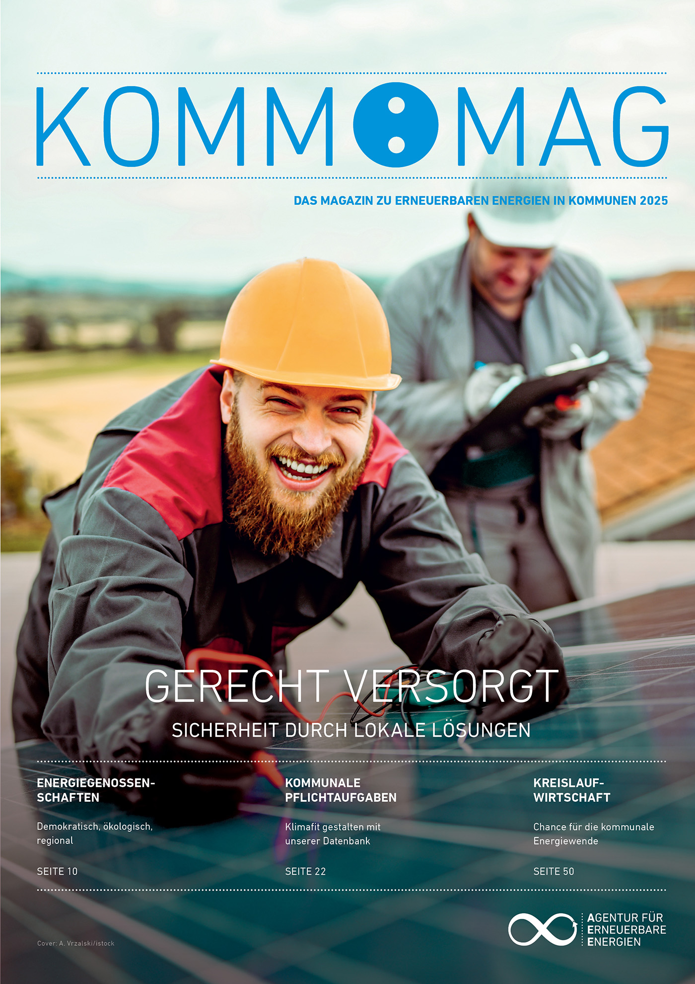 Im KOMM:MAG 2025 finden Sie Informationen zum Netzausbau als Schlüssel für eine stabile und verlässliche Energieversorgung, Beispiele zu Klimaanpassungen und Förderung auf kommunaler Ebene, neue Forschungsprojekte sowie die erste Vorstellung der AEE-Plattform für Kommunen.