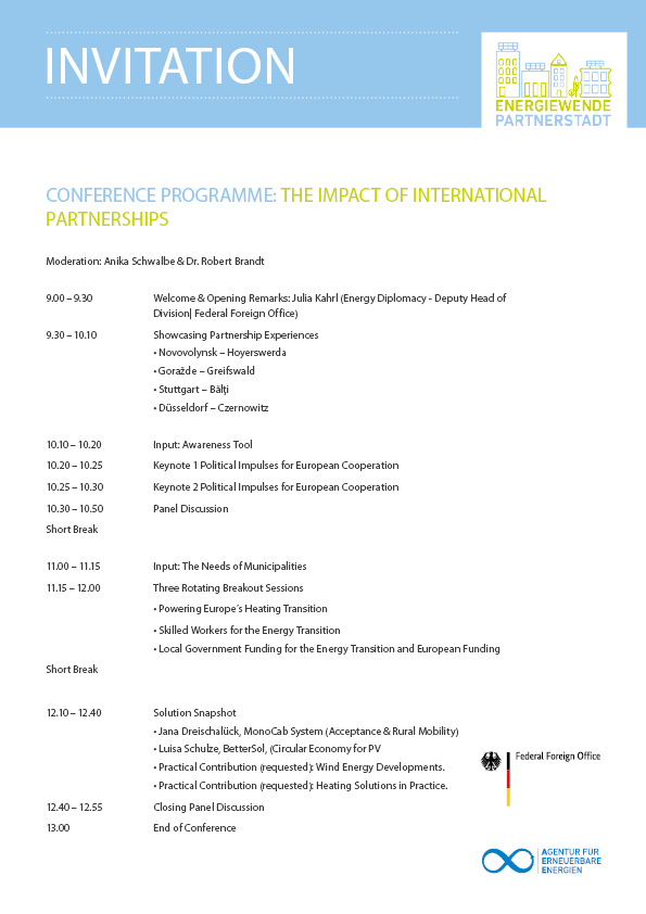 Over the course of two and a half years, eight municipalities from Ukraine, Bosnia and Herzegovina, the Republic of Moldova, and Germany engaged in an exchange and further training on key municipal aspects of the energy transition. Within the "Energy Transition Town Twinnings" project – funded by the Federal Foreign Office – they forged new, lasting connections, developed ideas, and strengthened cooperation beyond their own borders. Discover the significance of international contacts at eye level, especially in politically and financially turbulent times, and become part of this community.