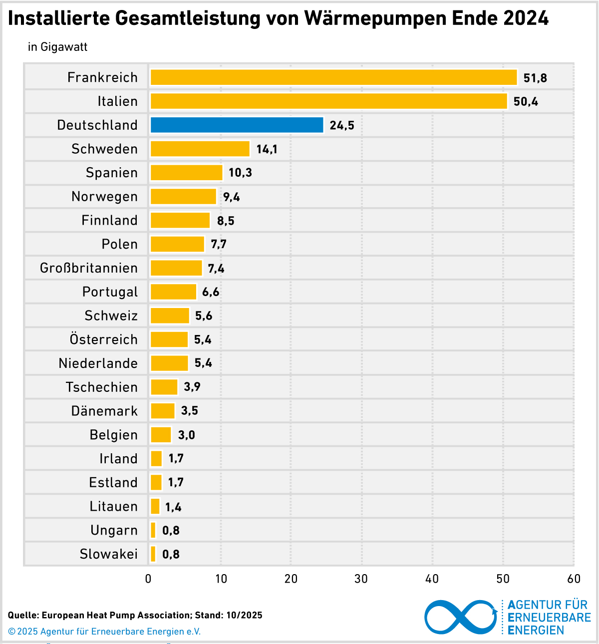 Deutschland bildet eines der Schlusslichter bei der Nutzung von Wärmepumpen in Europa 2024.