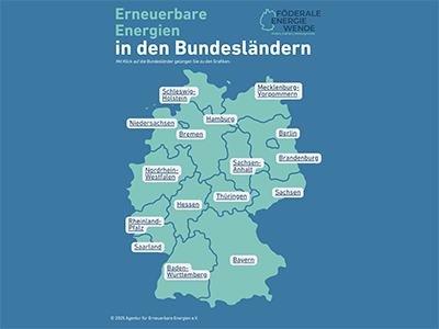 Der deutsche Föderalismus ist ein entscheidender Faktor der Energiewende. Bei der politischen Steuerung und Koordination hilft deswegen ein umfangreiches Monitoring und ein Vergleich zwischen den Bundesländern. Im Rahmen der unter der Dachmarke „Föderale Energiewende – Daten, Fakten, Hintergründe" zusammengefassten Projekte „Servicestelle EE" und „Informationsvermittlung im Rahmen der Servicestelle EE" (IRSEE) publiziert die Agentur für Erneuerbare Energien Daten über den Stand und die Entwicklungen bei der Energiewende in den einzelnen Ländern.