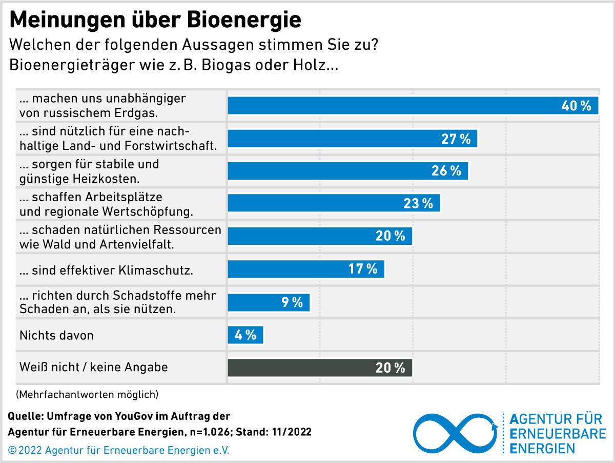 Akzeptanzumfrage 2022: Meinungen über Bioenergie | Zur Grafik » |